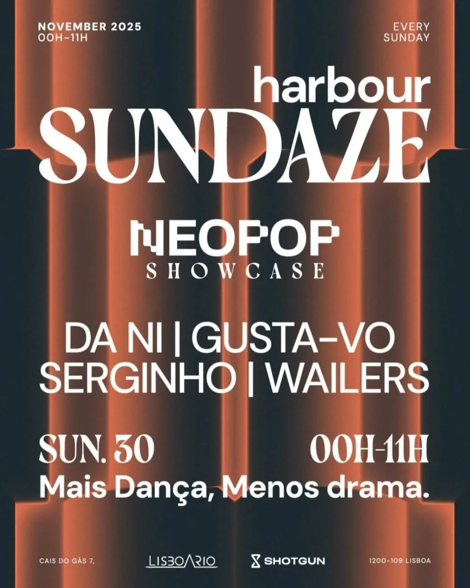 This Sunday Sundaze, with NEOPOP, joins in for a holiday eve without any dramas. We start at the same time but… we finish at 11am. Yes, we deserve it. Este domingo o Sundaze, com o NEOPOP, junta-se a uma véspera de feriado sem quaisquer dramas. Começamos à mesma hora mas… terminamos à s 11h. Sim, como bem merecemos.
